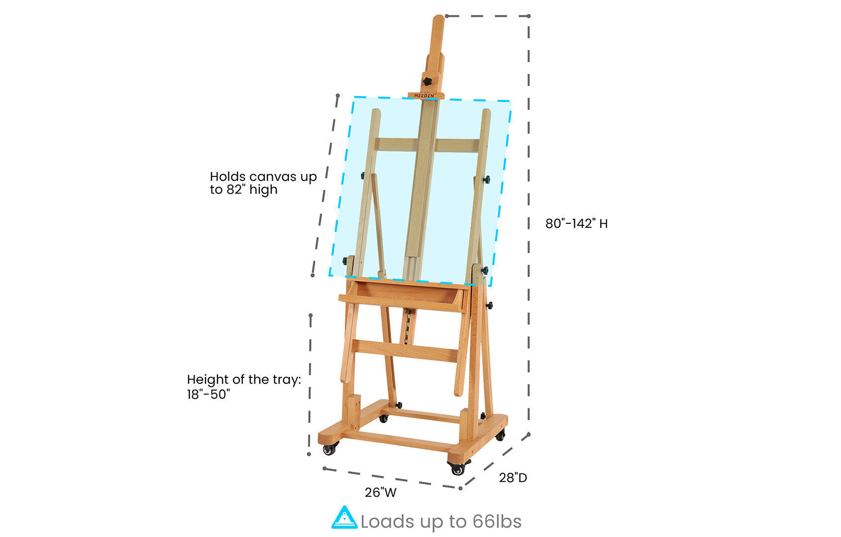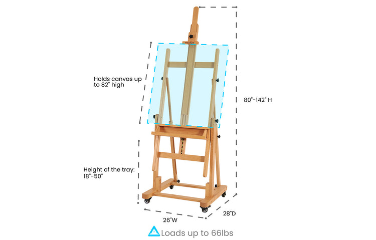 Create Big, Dream Big: Our Extra-Large Heavy-Duty H-Frame Easel supports canvases up to 82" high, with an adjustable height from 80" to 139" in vertical tilt. It's designed for artists who think and work on a grand scale.