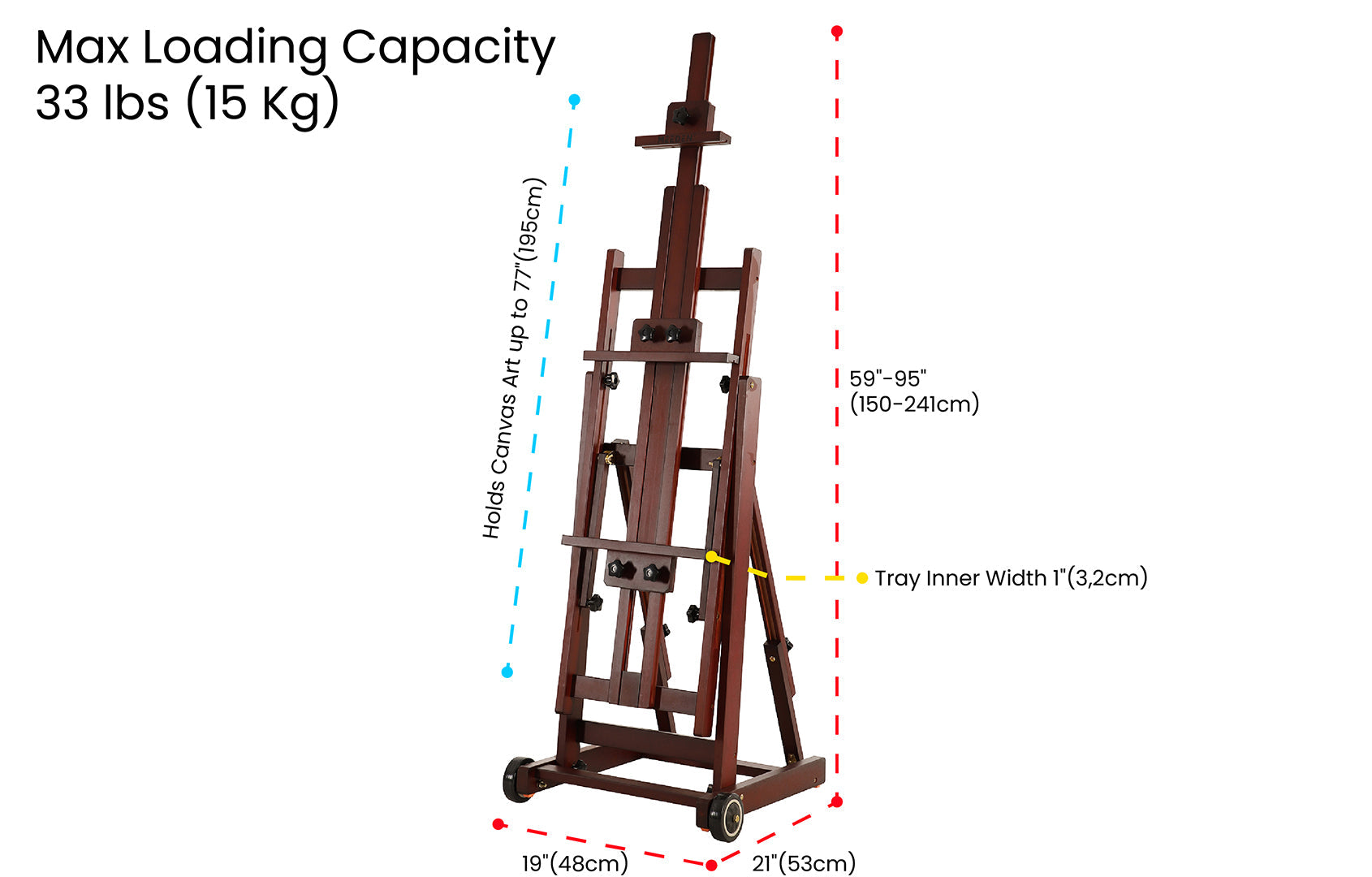 - Multi-Function H-Frame Easel: Constructed from solid beech wood, adjustable from 59" to 95", supports canvases up to 77".