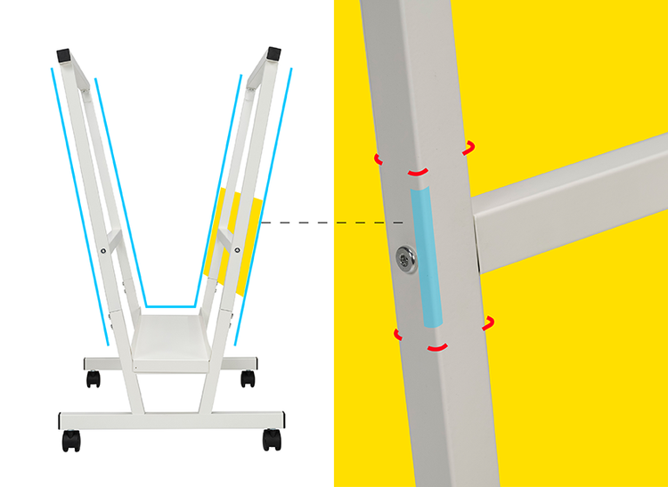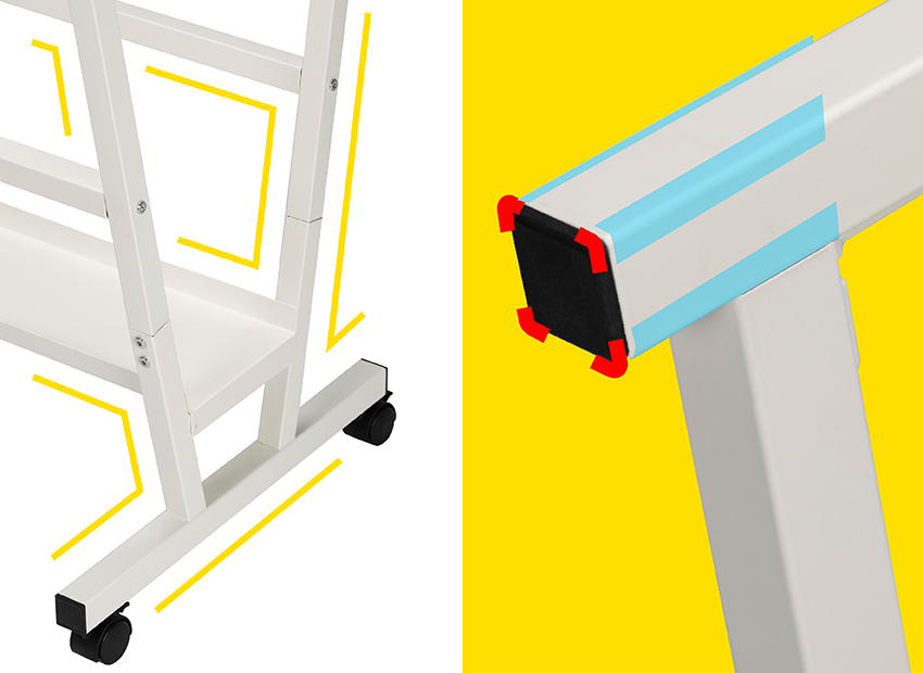 The metal frame with a stable structure prevents tipping over, ensuring safety. Exquisite metal craftsmanship brings a fine and smooth touch to every corner of the rack. Advanced technology handles every angle, delivering 100% safe and caring details. The detailed iron workmanship makes the rack rust-proof and durable, while smooth edges and corners further enhance safety.