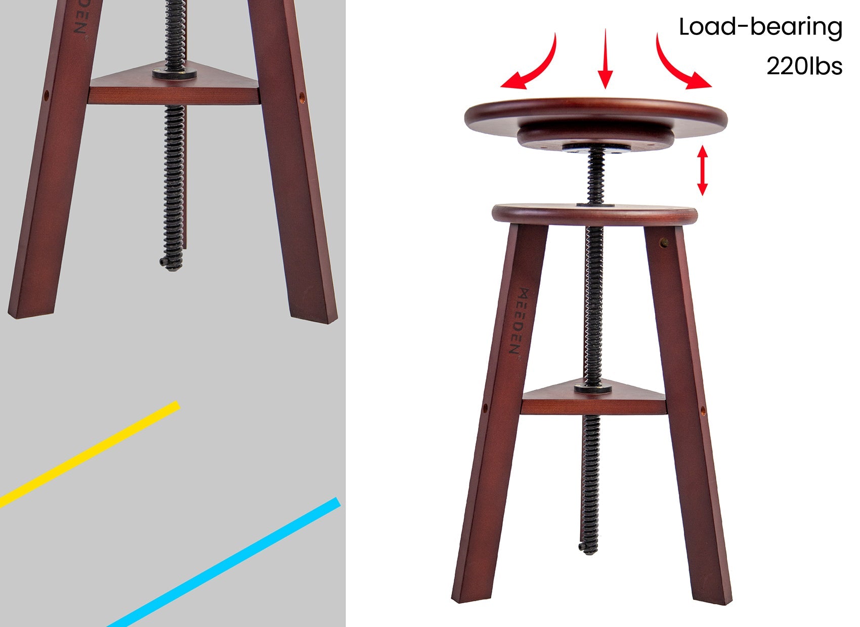 MEEDEN Wooden Drafting Stool with Adjustable Height-Dark Walnut-G-005