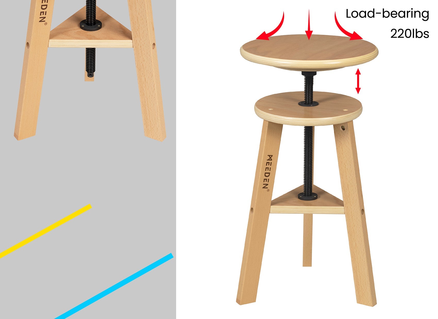 MEEDEN Wooden Drafting Stool with Adjustable Height-Natural-G-005